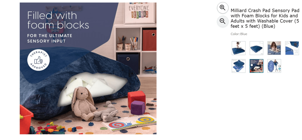 Crash pads, like this one can be an excellent addition to your child’s space. Crash pads are an excellent TBRI® sensory strategy because they give children safe, heavy-impact input that helps their bodies feel grounded and regulated. Jumping, crashing, and rolling into a crash pad provides proprioceptive input — deep pressure sensations that calm the nervous system, organize the brain, and release stored-up energy. This kind of play is especially helpful for children who are dysregulated, wiggly, or seeking big movement. Offering a crash pad is a way to meet a sensory need proactively and nurture connection by showing, “I see what your body needs, and here’s a safe way to do it.” Additionally, they double as a great pallet for family movie night, or “camping in the living room”